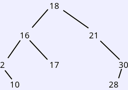 (18 (16 (2 nil (10 nil nil)) (17 nil nil)) (21 nil (30 (28 nil nil) nil)))